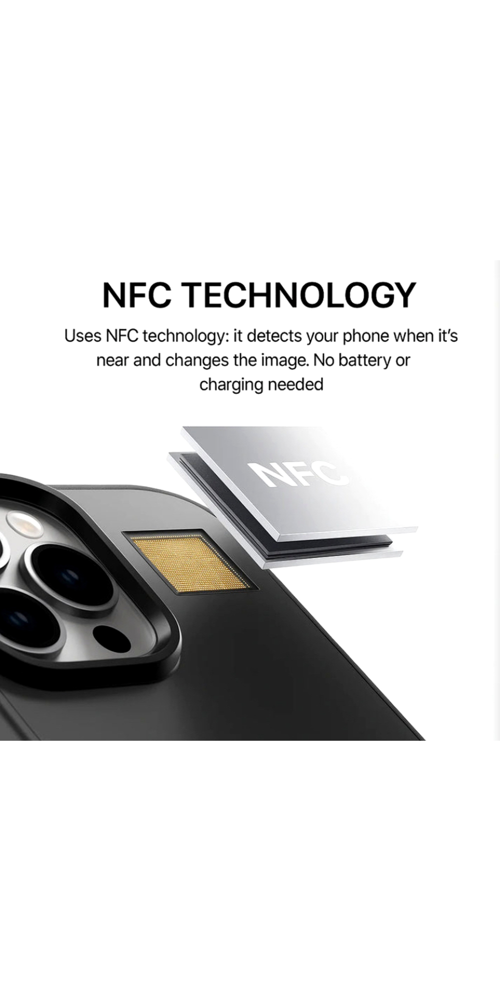 Glissez une photo, un message ou un motif via NFC et votre Couple Case s’actualise instantanément. L’idéal pour refléter votre personnalité, surprendre vos proches ou afficher un souvenir important en un clin d’œil.
